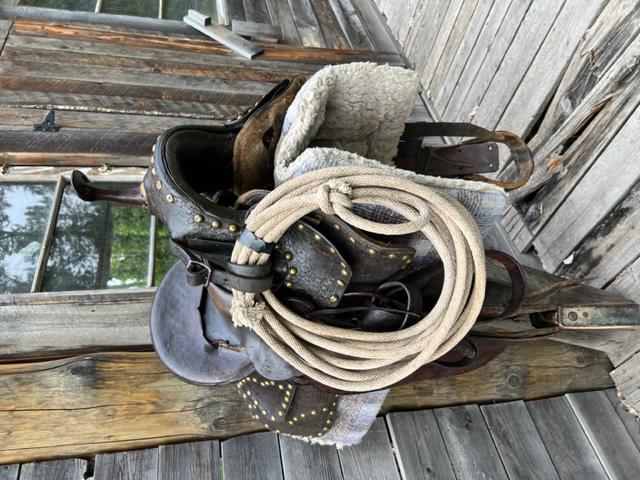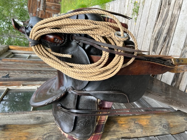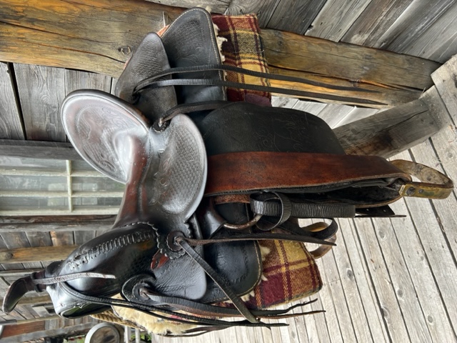 The 15.5" ranch saddle is made by Welsh's in Edmonton Alberta. The age is unknown, but a guess is it's from the 1970's. Auction price is payable in Canadian $.